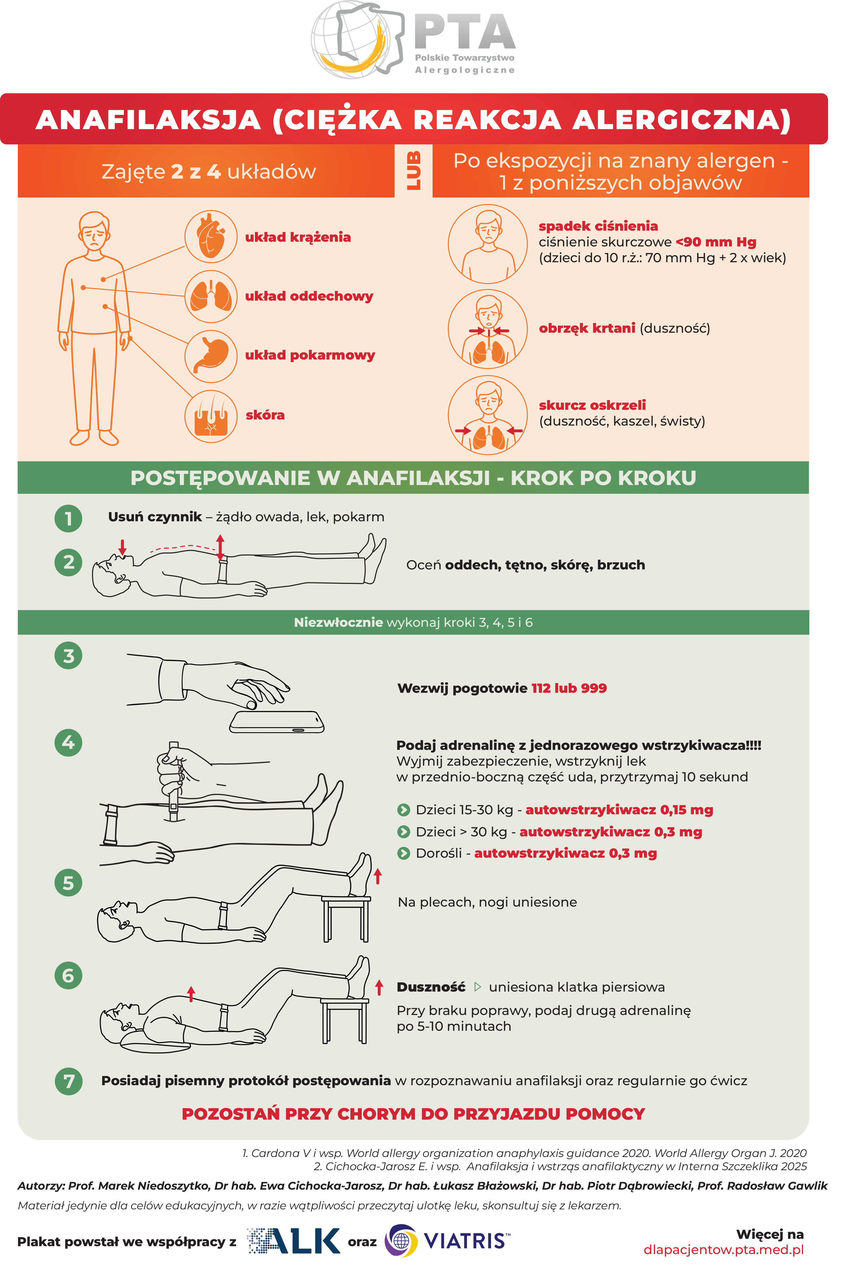 Jako Polskie Towarzystwo Alergologiczne przygotowaliśmy narzędzie, które w sytuacji krytycznej staje się niezawodnym przewodnikiem – nowoczesny, intuicyjny plakat edukacyjny. Materiał ten został opracowany przez naszych ekspertów w taki sposób, aby prowadzić użytkownika krok po kroku przez algorytm pomocy: od rozpoznania pierwszych symptomów, przez podanie adrenaliny, aż po wezwanie służb ratunkowych. [...]